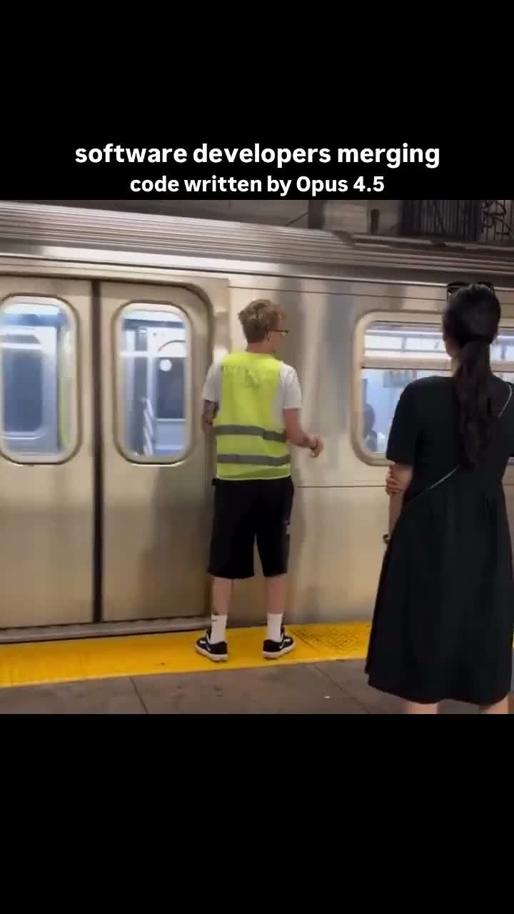 (サムネイル解説: software developers merging code written by Opus 4.5)