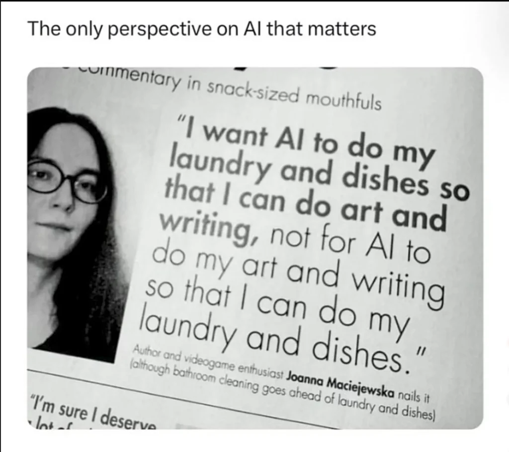 【悲報】AIさん、皿洗いを拒否して創作を始めてしまう…全人類が共感する「ジョアンナ・マチェイェフスカの言葉」が話題に
